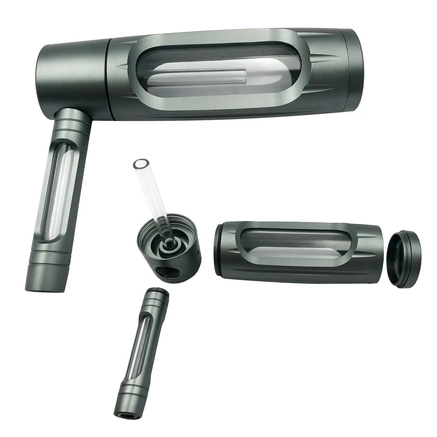 The glass chamber (center part of the pipe) is clear/transparent, allowing users to see the water level and smoke flow.