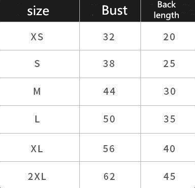 Measure your pet’s bust (chest) and back length before choosing a size.